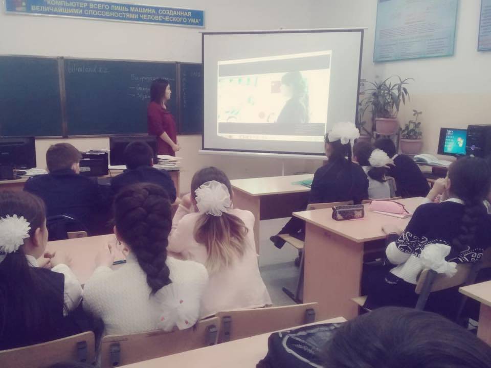 Іле ауданы М.Түймебаев ауылының №19 орта мектебінде 8-11сынып оқушылары арасында "Адамгершілік рухани құндылықтарды қалыптастыруға және оқушылардың аутодиструктивті мен девиантты мінез-құлқының, құқық бұзушылықтың алдын алу" тақырыбында оқушылармен әңгіме,сұxбат жүргізілді. Мақсаты:Жасөспірімдерді агрессияны ескеруге және өмірдің қиын жағдайын жеңуге бағыттаудың алдын алу болып табылады.