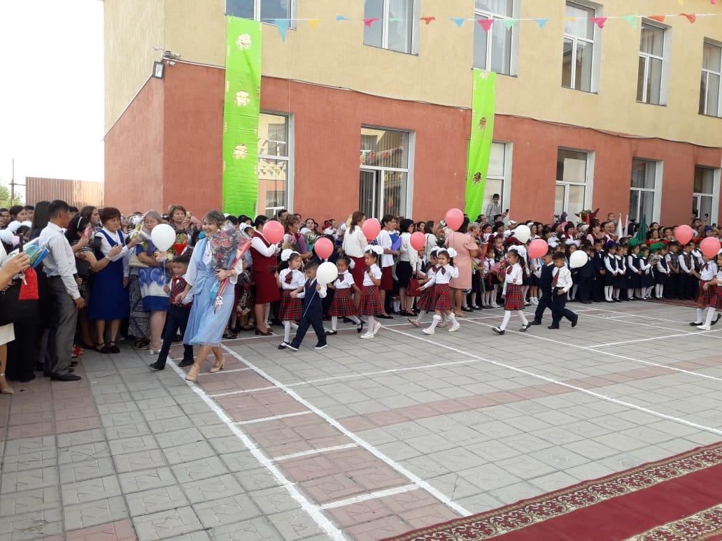 Мектебімізде Білім күніне арналған салтанатты жиын өтті. Алғашқы қоңырау соғылып, бүлдіршіндер мектеп табалдырығын аттады. Салтанатты жиынының тақырыбы: "Саналы ұрпақ- жарқын болашақ" деп аталды. Мерекеде қонақтар сөз сөйлеп, бүлдіршіндерге құтты қадам тіледі. Құттықтау сәттен соң ән шырқалып, оқушылар мектеп табалдырығын аттады.