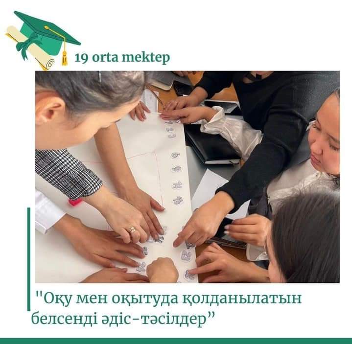 "Оқу мен оқытуда қолданылатын белсенді әдіс-тәсілдер"тақырыбында үйрету семинары өтті. Алматы облысы Іле ауданы М.Түймебаев ауылы №19 орта мектеп Мемлекеттік мекемесi базасында қараша айынын жумыс жоспарына сәйкес, «Әдiстемелiк сандықша» багытында «Оқу мен оқытуда колданылатын белсенді әдіс-тәсілдер» тақырыбында үйрету семинары өтті.Семинардың максаты-Колаборативтi орта қалыптастыра отырып,мугалiмдердiн кәсiби құзіреттілігін арттыру. Бағдарламаға сәйкес «Активные приемы и методы на основе новых подходов в обучении» такырыбында №19 орта мектептің география және тарих пәні мұғалiмi,педагог-зерттеуші Сагындыкова Анар Мамырхановна теориялық тұрғыдан таныстырылым ұсынып,мұғалімнің кәсiби құзіреттілігі туралы ақпарат ұсынды.Кәсiби құзіреттілікті көтеру,дамыту үшiн қажетті әрекеттiң маңыздысы-педагогтiң дамуы,білімінің үздiксiз жетiлдiруi екендiгi айқын,бүгінгі күні білім беру мазмұнын жаңарту аясындагы окытуда белсендi әдiс-тәсiлдердiң алатын орны мен алуан түрлiлiгi туралы ете ауқымды турде ақпарат берiлдi. Семинардын практикалық бөлiмiнде мектептің математика пәні мұғалімдері Дәурен Әбілда мен Жансая Имансаева «Математика пәні сабақтарында белсендi әдiс-тәсiлдердi қолдану» тақырыбында мұғалімдермен коучинг еткiздi.