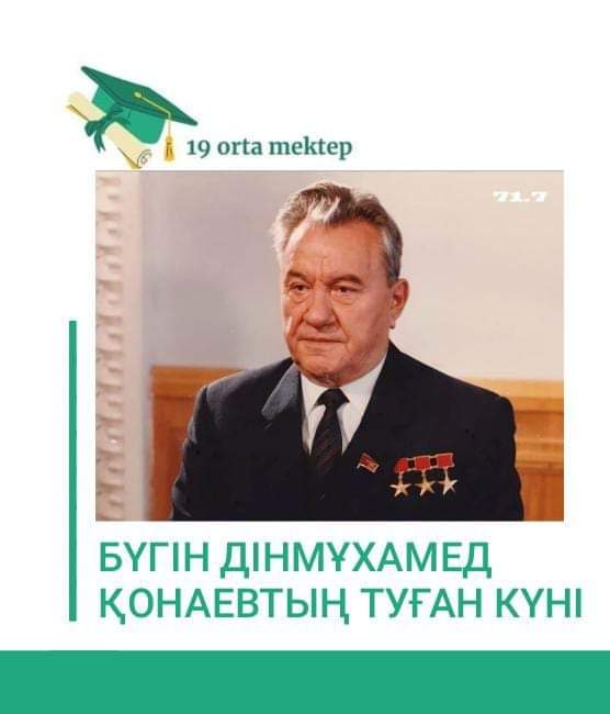 🇰🇿🇰🇿🇰🇿 Бүгін Дінмұхамед Ахметұлы Қонаевтың туған күні. » №19 ОРТА МЕКТЕП