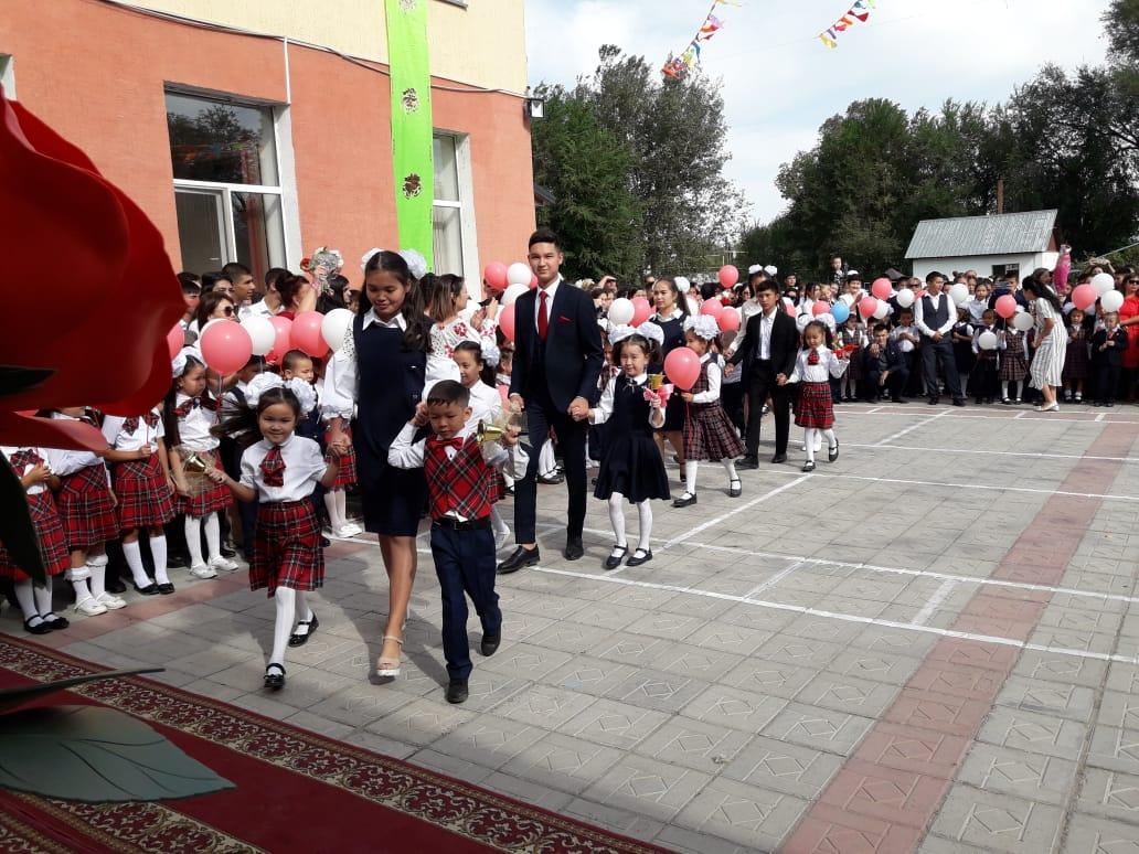 Мектебімізде Білім күніне арналған салтанатты жиын өтті. Алғашқы қоңырау соғылып, бүлдіршіндер мектеп табалдырығын аттады. Салтанатты жиынының тақырыбы: "Саналы ұрпақ- жарқын болашақ" деп аталды. Мерекеде қонақтар сөз сөйлеп, бүлдіршіндерге құтты қадам тіледі. Құттықтау сәттен соң ән шырқалып, оқушылар мектеп табалдырығын аттады.