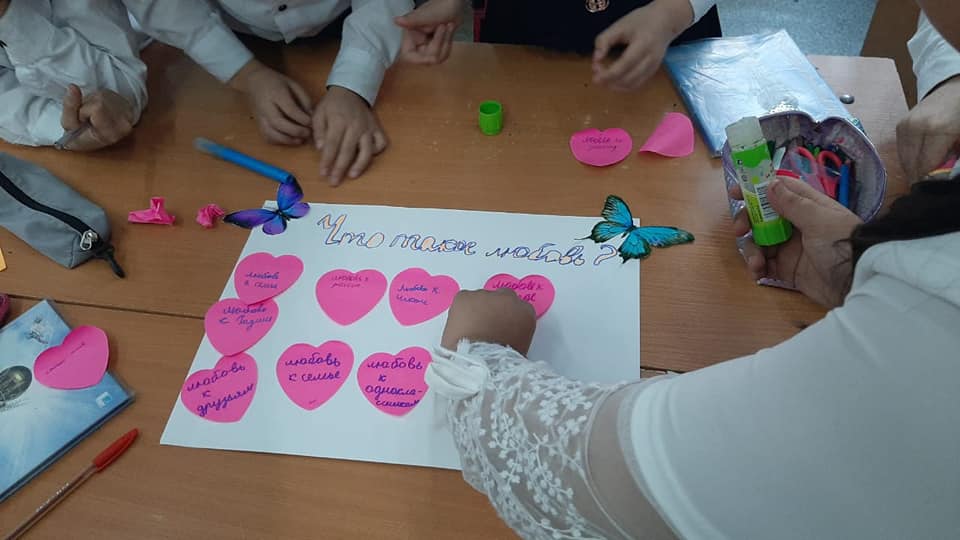 07.02.2020 ж к күні #19 орта мектебінде "Махаббат пен Шығармашылық педагогикасы"онкүндігінде өзін-өзі тану пәні мұғалімі О Суханова 4"д"сыныбымен "Учимся любить"тақырыбында ашық сабақ өткізді.Оқушылар постер қорғап,топпен шығармашылық жұмыстар жасады.Оқушылар белсенділік танытты.