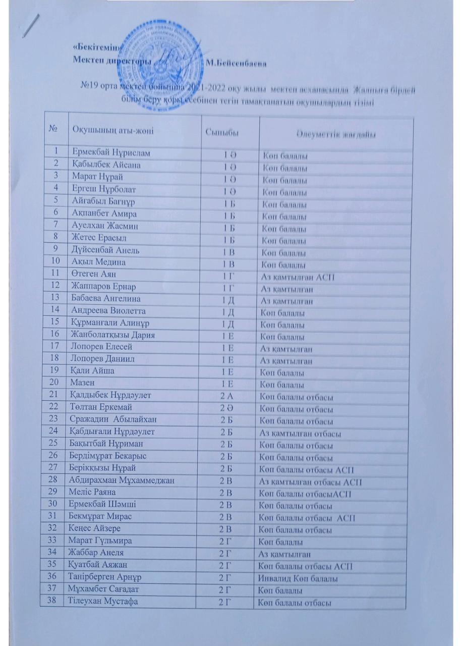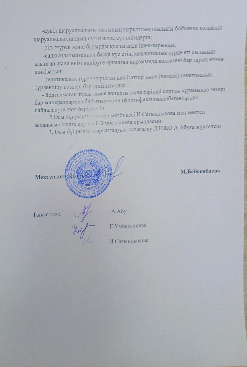 Тыйым салынған тағамдарды мектеп асханасында сатпау туралы бұйрықтар » №19 ОРТА МЕКТЕП