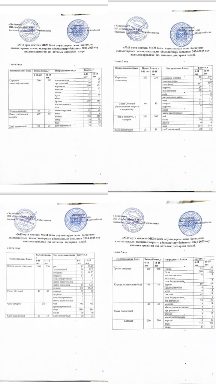 Асханадағы тамақтану келісімі » №19 ОРТА МЕКТЕП